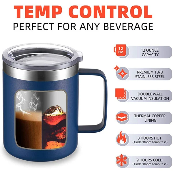 - 450ml Vakum Yalıtımlı Kupa, iç duvarlarda kesintisiz bağlantılara sahip, yalıtım performansını önemli ölçüde artıran çift katmanlı bir vakum yalıtım tasarımını benimser.