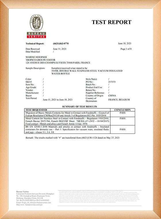 Bağımsız patentli paslanmaz çelik termos bardağı ile bağımsız bir araştırma ve geliştirme ekibimiz var. Fabrika BSCI denetimini ve sertifikasını geçti.