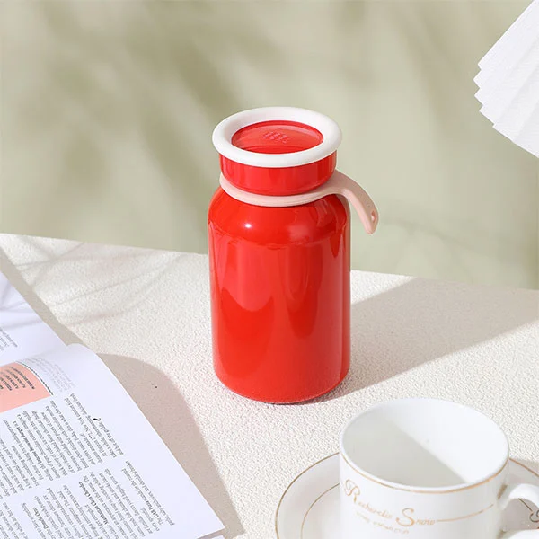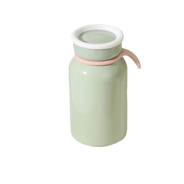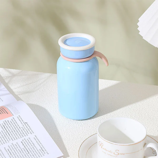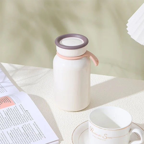 300ml vakum yalıtımlı şişede silikon saplı bir kayış var, şişeyi almak kolay ve modaya uygun bir insan olarak sokakta yürüyordu.