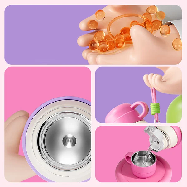 6600ml Kids Paslanmaz Çelik Su Şişesi Termal Yalıtım Sızdır Dışı Sevimli Kupa