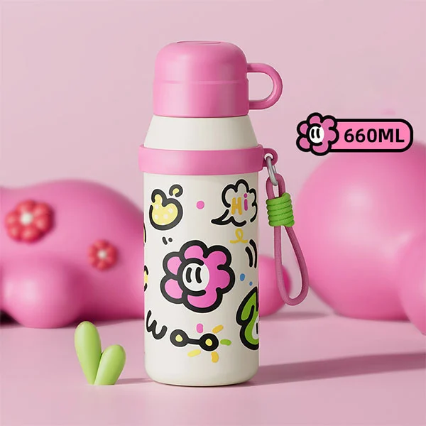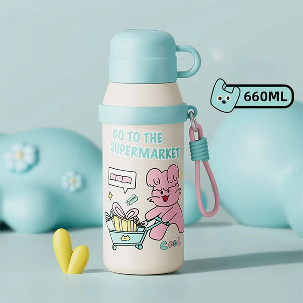 Bu çocukların paslanmaz çelik karikatür su şişesinin kapasitesi 660ml'dir.