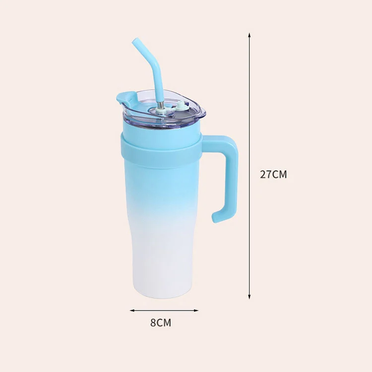 Bardak gövdesi, güvenli ve hijyenik içmeyi sağlamak için 304 paslanmaz çelik saman ve gıda sınıfı silikon nozul ile donatılmıştır. Bir hediye seçimi olarak, bu bardak tüm dünyada popülerdir ve çeşitli durumlar için uygundur: araba kullanımı, açık hava etkinlikleri, ofis ve ev hayatı.