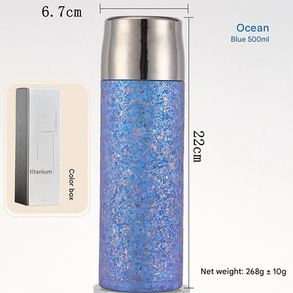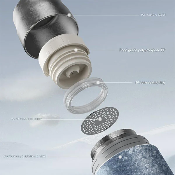 Klasik çay demleme makinesi Titanyum şişesi, hem içi hem de dışı saf titanyumdan yapılmış, sızdırmaz kapaklar, saf titanyum fincan kapakları ve çift katmanlı haşlanma önleyici ile donatılmış sızdırmaz bir bardağa sahiptir!